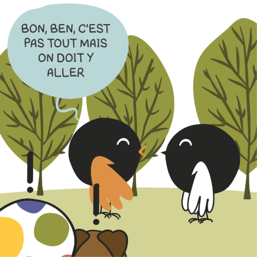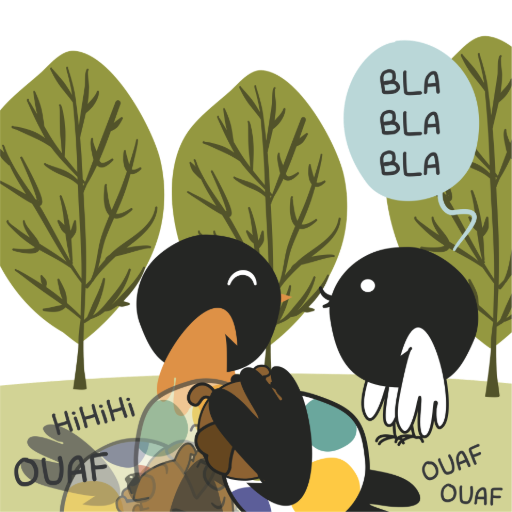 Une anecdote qu'on a pas pu garder dans ma BD… mais qui me ressemble tellement. Quand il y a une soirée, du monde, des discussions qui fusent… moi, je suis souvent assise à côté du chien, du chat… ou parfois d'un escargot, dans le jardin .