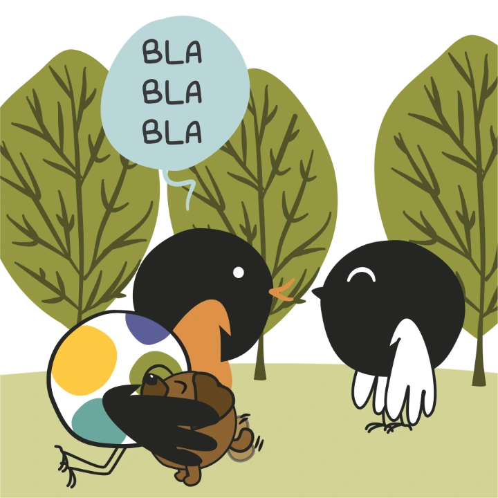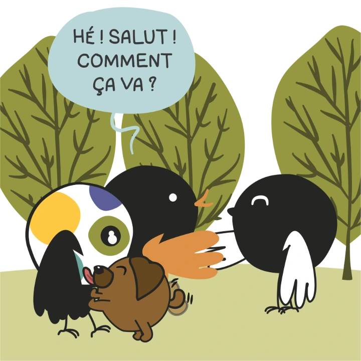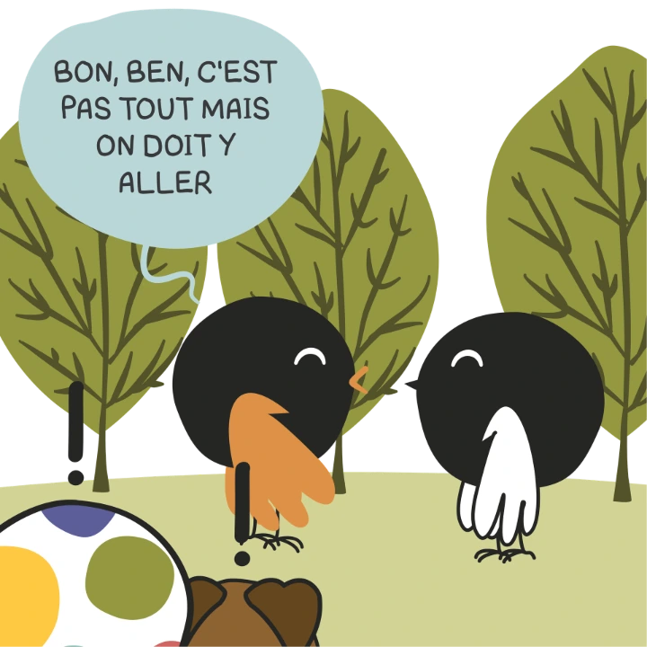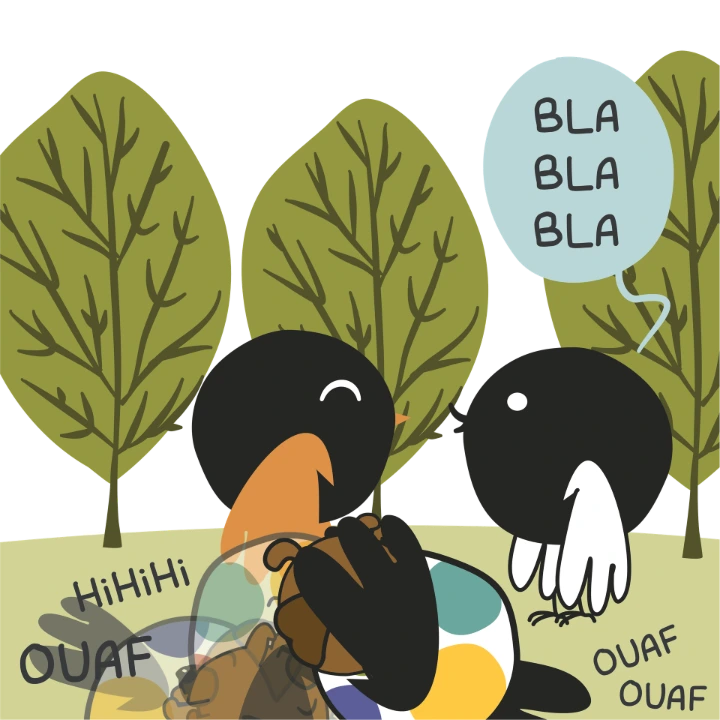 Une anecdote qu'on a pas pu garder dans ma BD… mais qui me ressemble tellement. Quand il y a une soirée, du monde, des discussions qui fusent… moi, je suis souvent assise à côté du chien, du chat… ou parfois d'un escargot, dans le jardin .