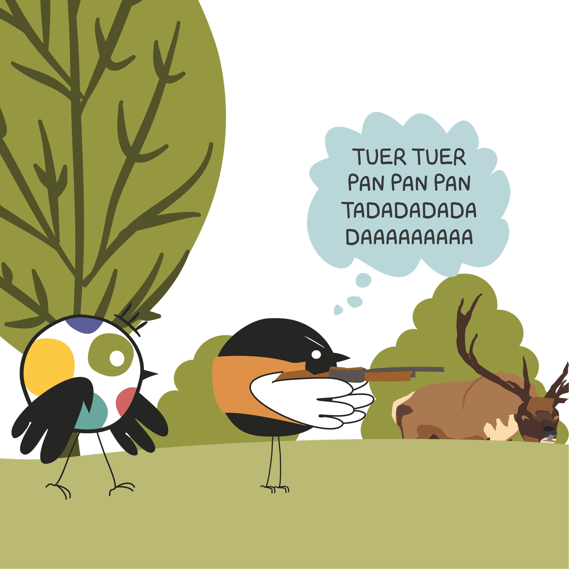 Octobre 2024, je me promène, comme à mon habitude, le long du canal, sur une voie publique, jumelles en main, à la recherche d'un Roitelet Huppé. Et là… un énorme "PAN" éclate à quelques mètres de moi. Je sursaute, les oiseaux s'envolent : des chasseurs chassent à proximité de la voie verte. Je pleure, je gueule et je bloque. Je ne suis plus capable de bouger.